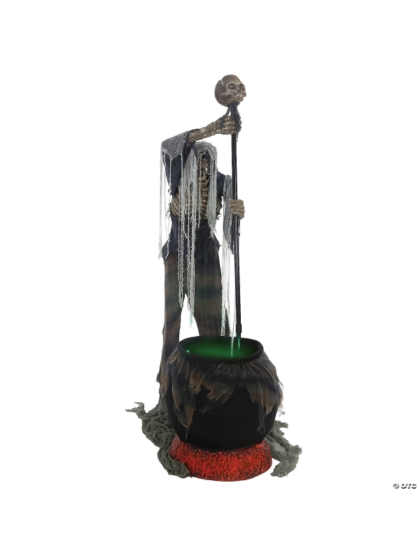 Le cadavre géant au chaudron est un automate animé qui pèse près de 9,45 kg. Il représente un cadavre en décomposition qui remue un chaudron. La tête est en PVC avec une mâchoire articulée et des détails réalistes. Il dispose de trois options d’activation : Steady-On, Infra-Rouge Sensor ou Step Here Pad, ainsi que trois phrases terrifiantes, y compris un rire diabolique. De plus, il est équipé d’un tuyau de brouillard en option (inclus) pour compléter l’effet effrayant. L’assemblage est facile grâce à des tubes à connexion rapide. Les matériaux utilisés dans sa fabrication comprennent du fer (40%), du polyester (30%), du coton (20%), du PVC (8%) et de l’électronique (2%).