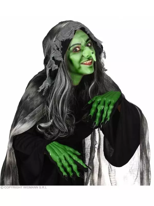 Gants mains de sorcières 3D verts, pour compléter à la perfection votre personnage pour Halloween.