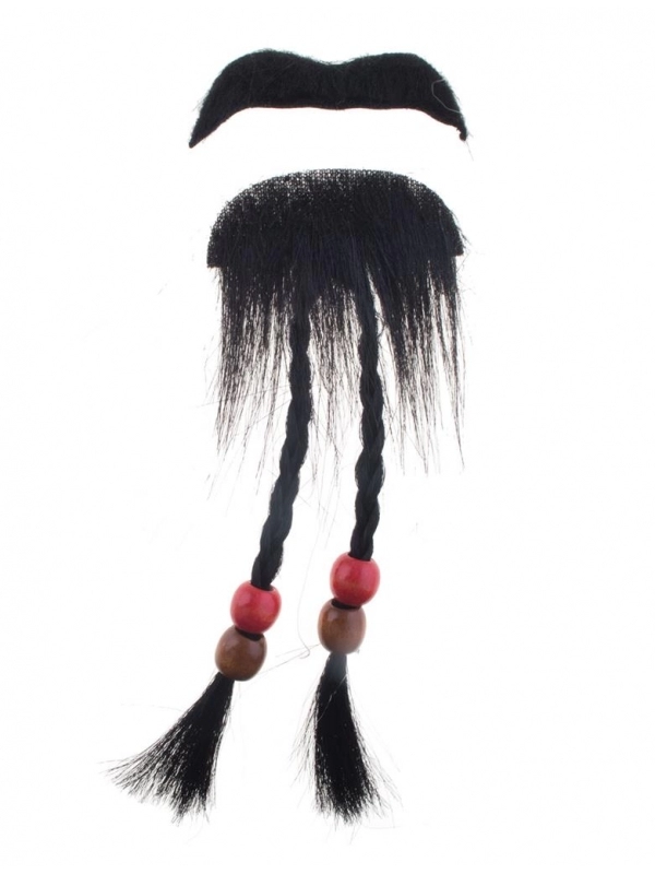 Complétez votre look de pirate des Caraïbes avec cette paire de moustache et sa barbichette qui se prolonge en 2 tresses agrémentées de perles en bois.