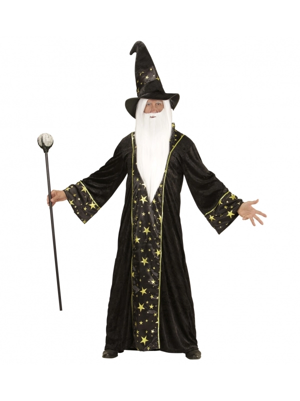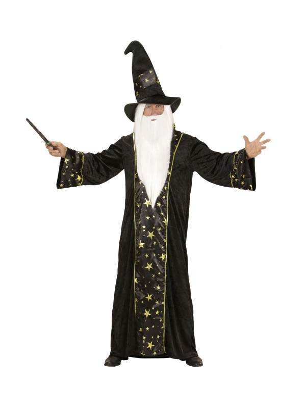 Incarnez le plus grand magicien des contes et légendes avec ce déguisement noir et doré
