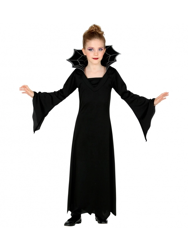 Offrez à votre fille un déguisement d’Halloween digne d’une vraie vampiresse de Transylvanie avec cette jolie robe médiévale. Les manches et la longueur de la robe ajoutent une touche médiévale authentique, tandis que le col en toile d’araignée ajoute un charme effrayant à l’ensemble.