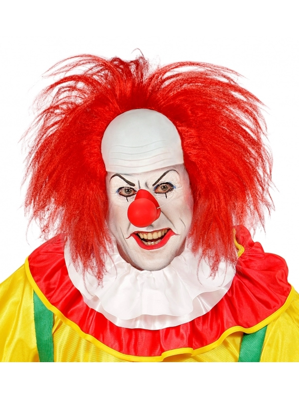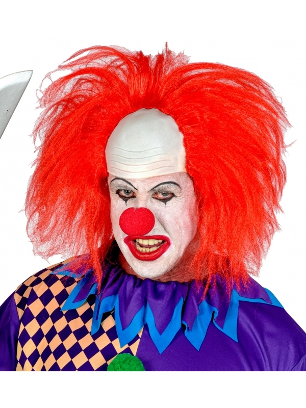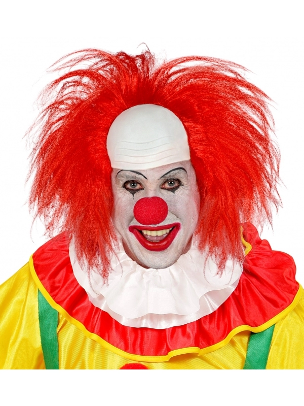 Perruque clown chauve avec calotte et cheveux rouge