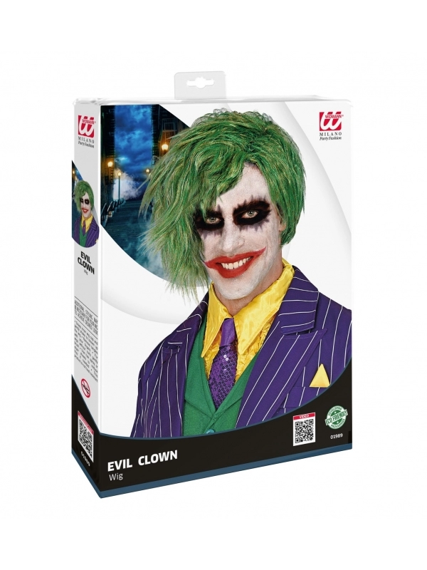 Perruque verte déstructurée avec une longue mèche, pour incarner le Joker le plus déjanté de tous les temps.